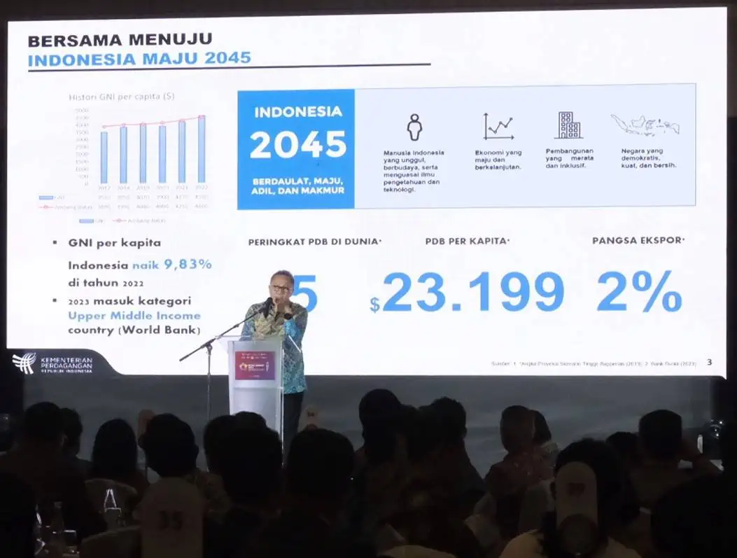 Orang nomor satu di Kementerian Perdagangan ini menjelaskan, pada triwulan II-2023 ekonomi Indonesia tumbuh 5,17 persen yoy didukung aktivitas konsumsi rumah tangga yang berkontribusi sebesar 53,31 persen. Konsumsi rumah tangga pada triwulan II-2023 juga tumbuh sebesar 5,23 persen (yoy).